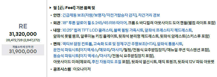 이번에 출시된 ‘Feel’ 트림은 가장 많은 판매량을 달성할 것으로 기대된다.